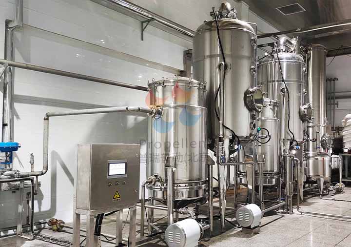 普瑞普勒采用二效逆流蒸發(fā)濃縮方式,間歇化生產(chǎn),滿足后續(xù)糖漿 使用不堆積,總蒸發(fā)水量2t/h。半自動控制,能完成MCS控制、安全監(jiān) 控、報警等,確保裝置安全高效穩(wěn)定運(yùn)行。