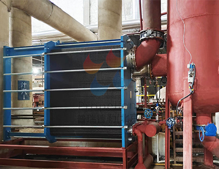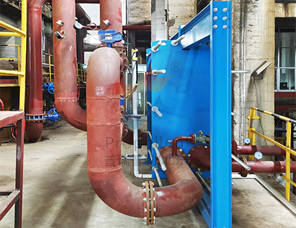 板式冷凝器用于蒸汽和乏汽冷凝,可完全冷凝糖漿汁汽,回收冷凝水。特殊的波紋流動形式特別適合于二次蒸汽冷凝,降低汁汽側的壓力損失。